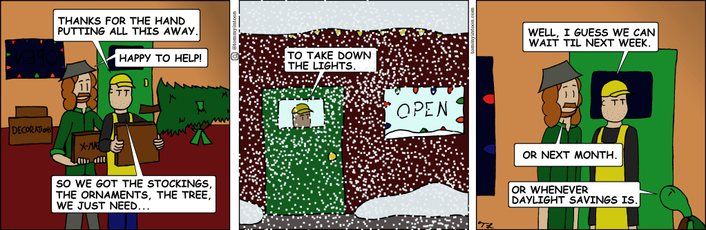 If there’s snow on the ground, you can keep your lights up. That’s my hot take.