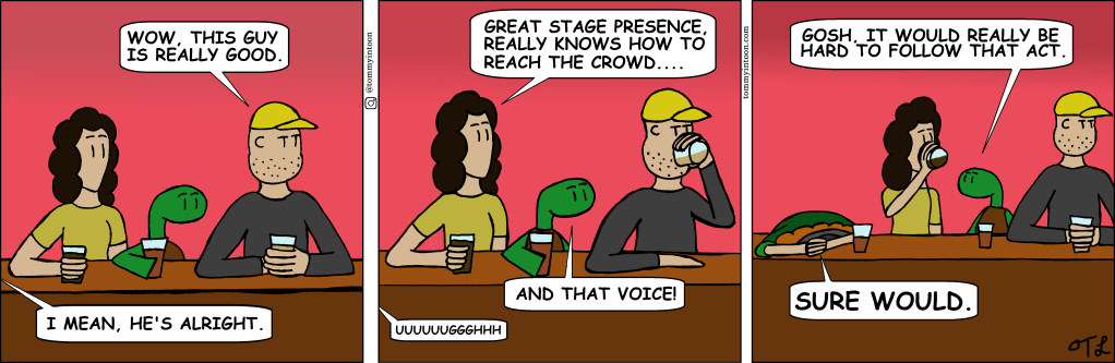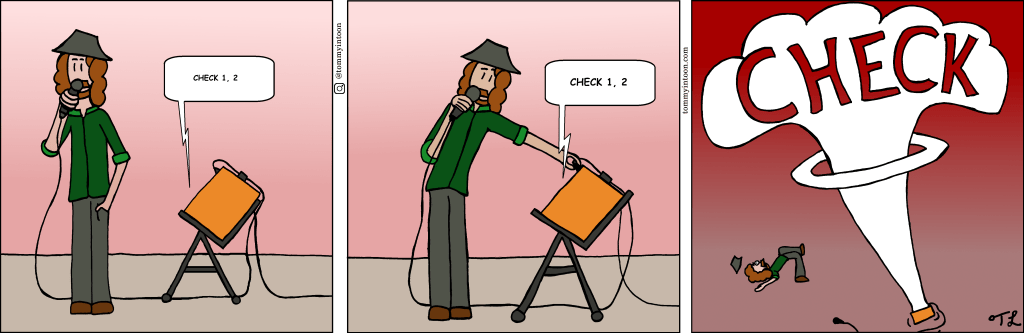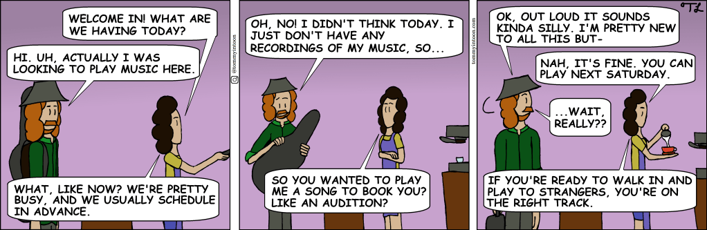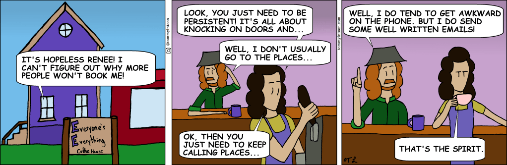 Another reprint of an early cartoon. And very true to the actual experience of the first show I ever booked. -