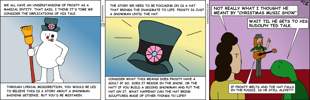 Is Good King Wenceslas fan fiction going to become this cartoon’s recurring theme every December? Who can say! Merry Christmas! -