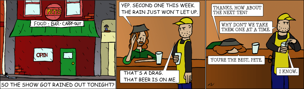 The reason there are so many songs about rain is because every musician ever has had a show rained out. -
